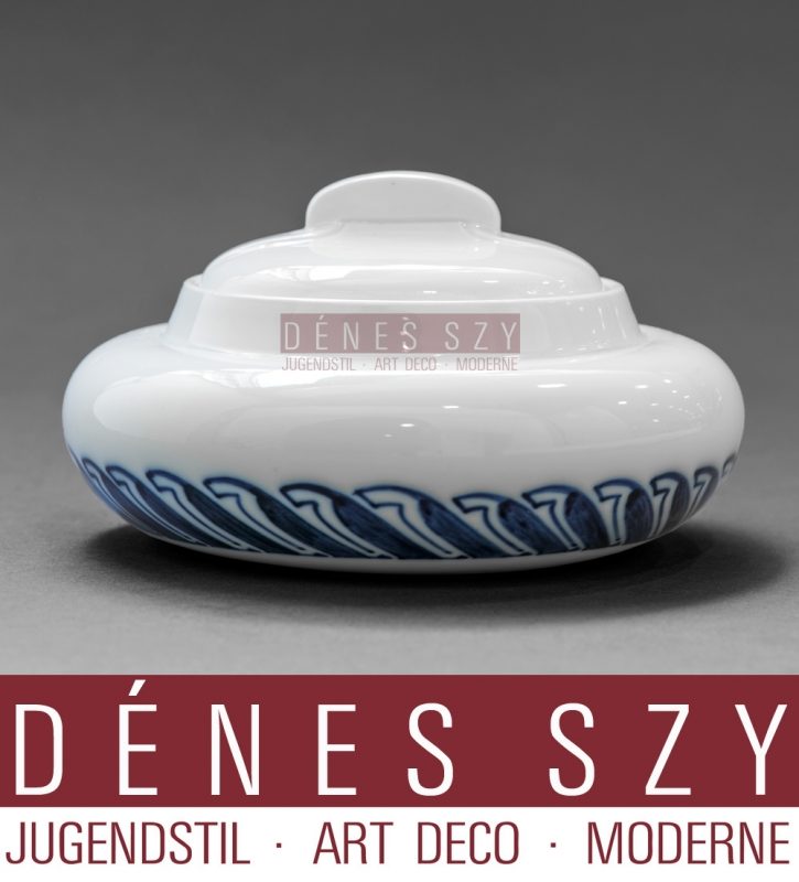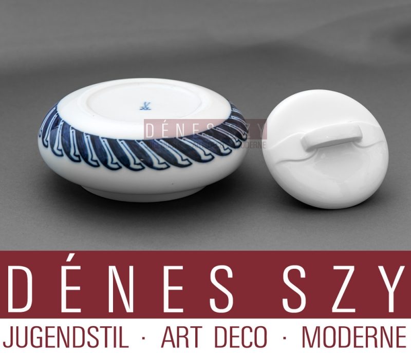 Henry van de Velde Meissener Jugendstil Porzellan ca. 1900 Zuckerdose mit Deckel, Peitschenhiebmuster in Kobaltblau