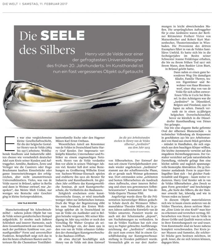 Artikel: DIE WELT SAMSTAG, 11. FEBRUAR 2017, Henry van de Velde Jardiniere Die_Welt_Henry_van_de_Velde_Jardiniere_Szy