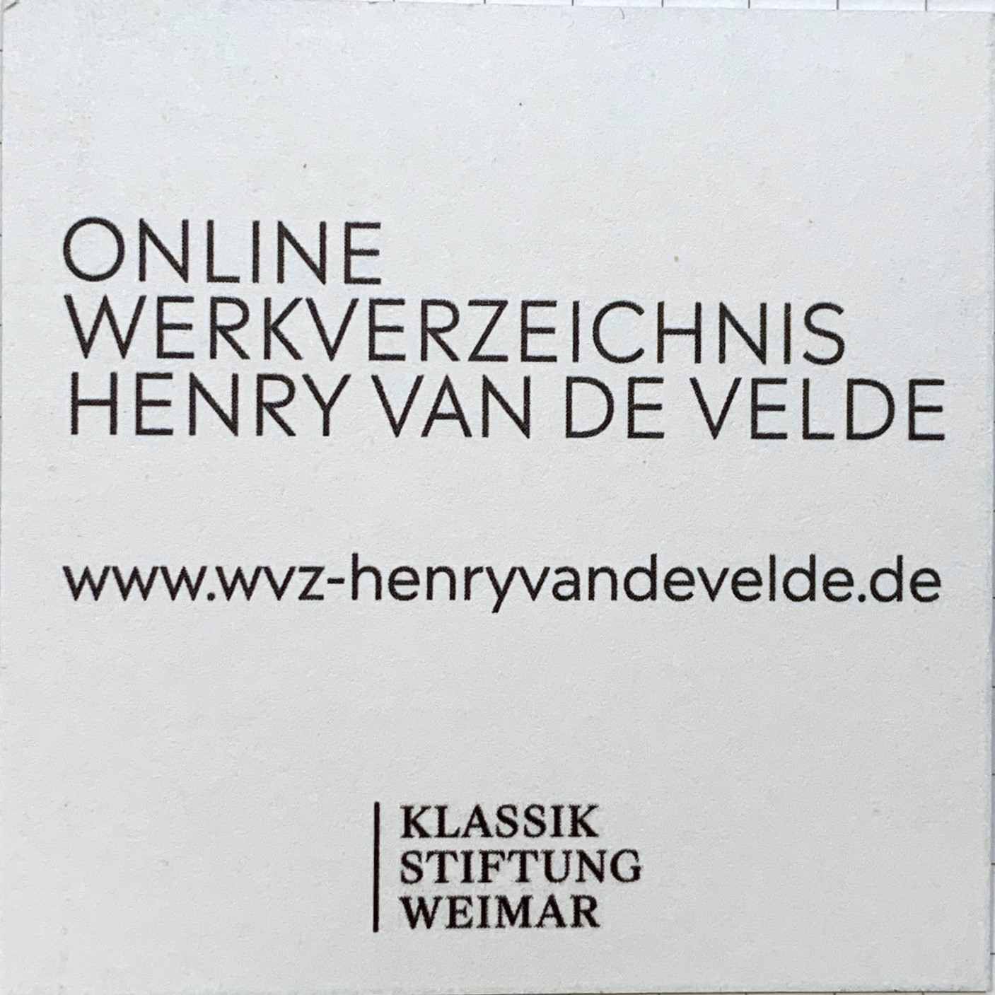 Literatur: T. Foehl / A. Neumann: Henry van de Velde. Raumkunst und Kunsthandwerk. Ein Werkverzeichnis in sechs Baenden. Klassik Stiftung Weimar 2009. Band 1: Metallkunst, Metallkunst, Nr. I.3.1.7