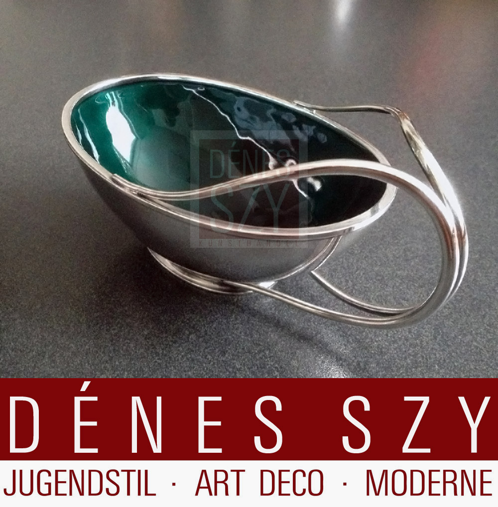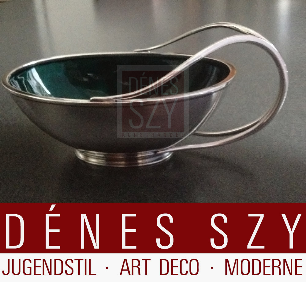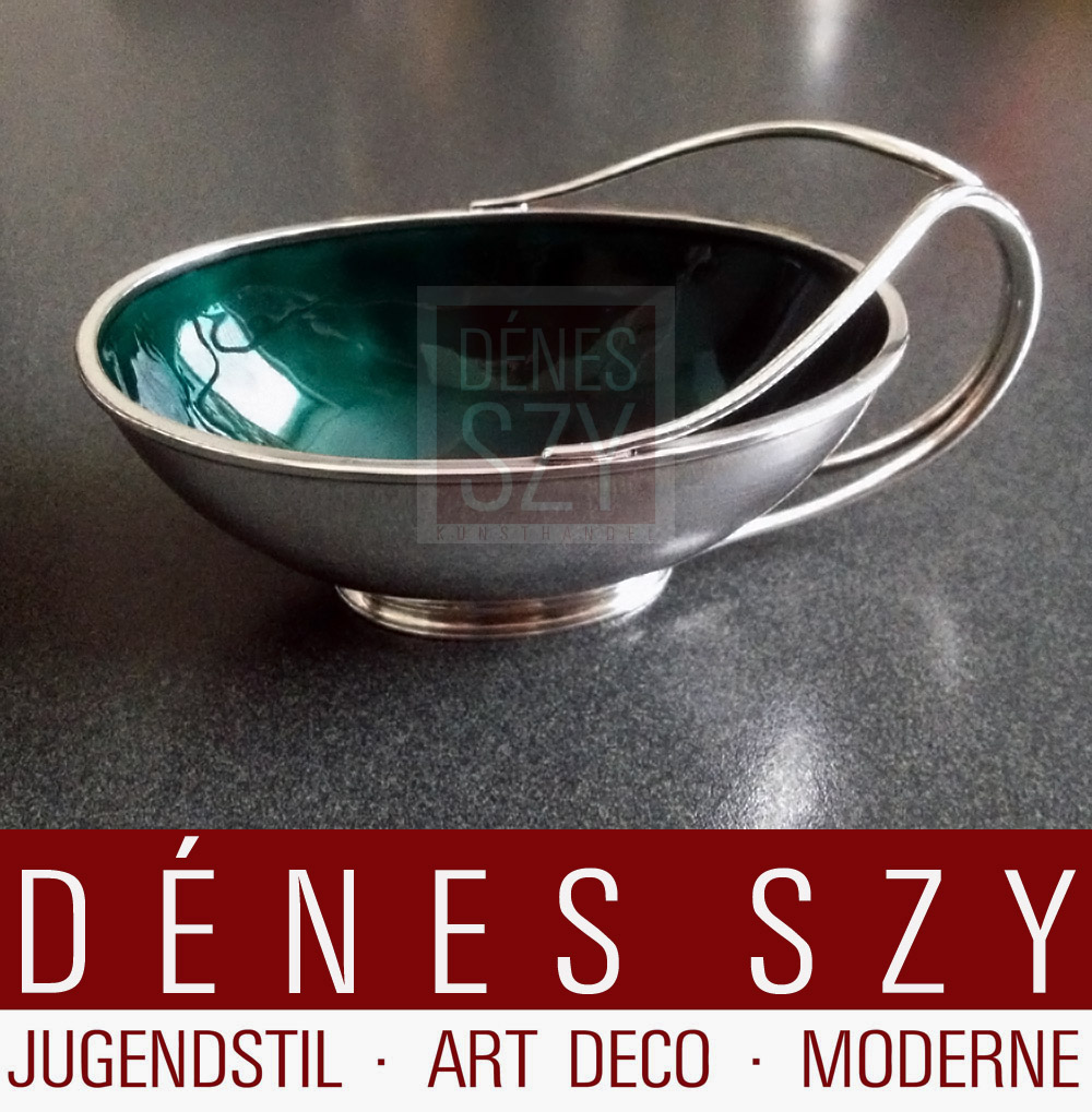 Mid Century Modern Sterling Zuckerschale, Anbietschale, kleine Sauciere von Frantz Hingelberg, Design Svend Weihrauch ca 1948, Sterling Silber innen grün emailliert