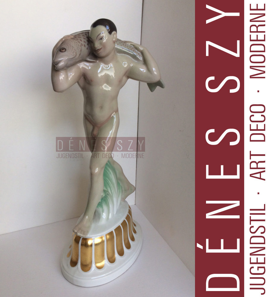Jugendstil Porzellanfigur, Japaner mit Fisch aus dem „Hochzeitszug“