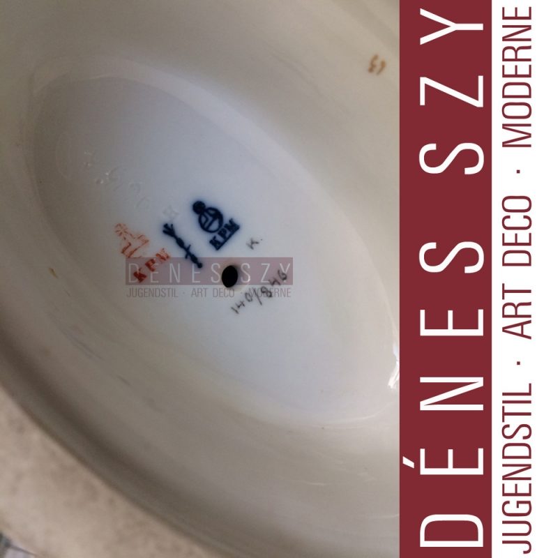 Marken: unterglasurblaue Zeptermarke,unterglasurblaue Reichsapfelmarke, rote Reichsapfelmarke, Modellnr. 9615 und Jahresbuchstabe H für 1908 !