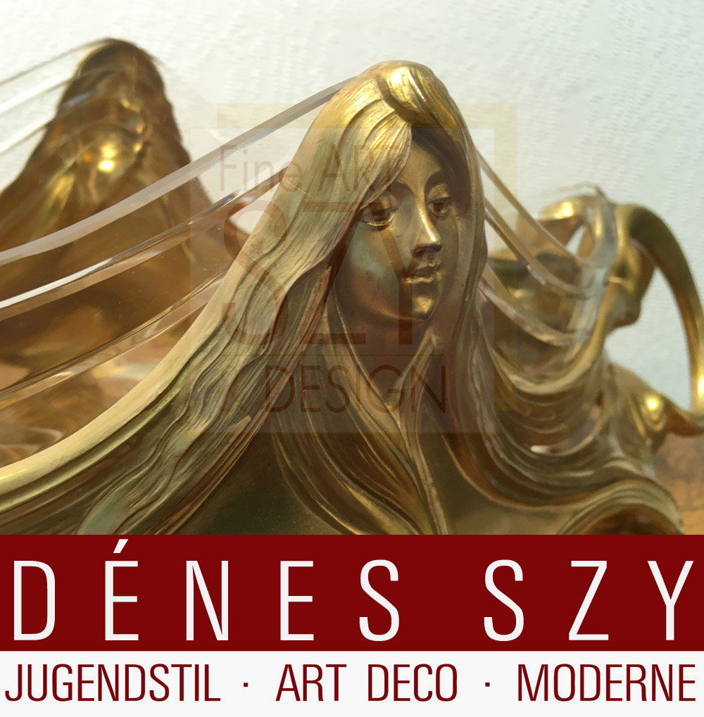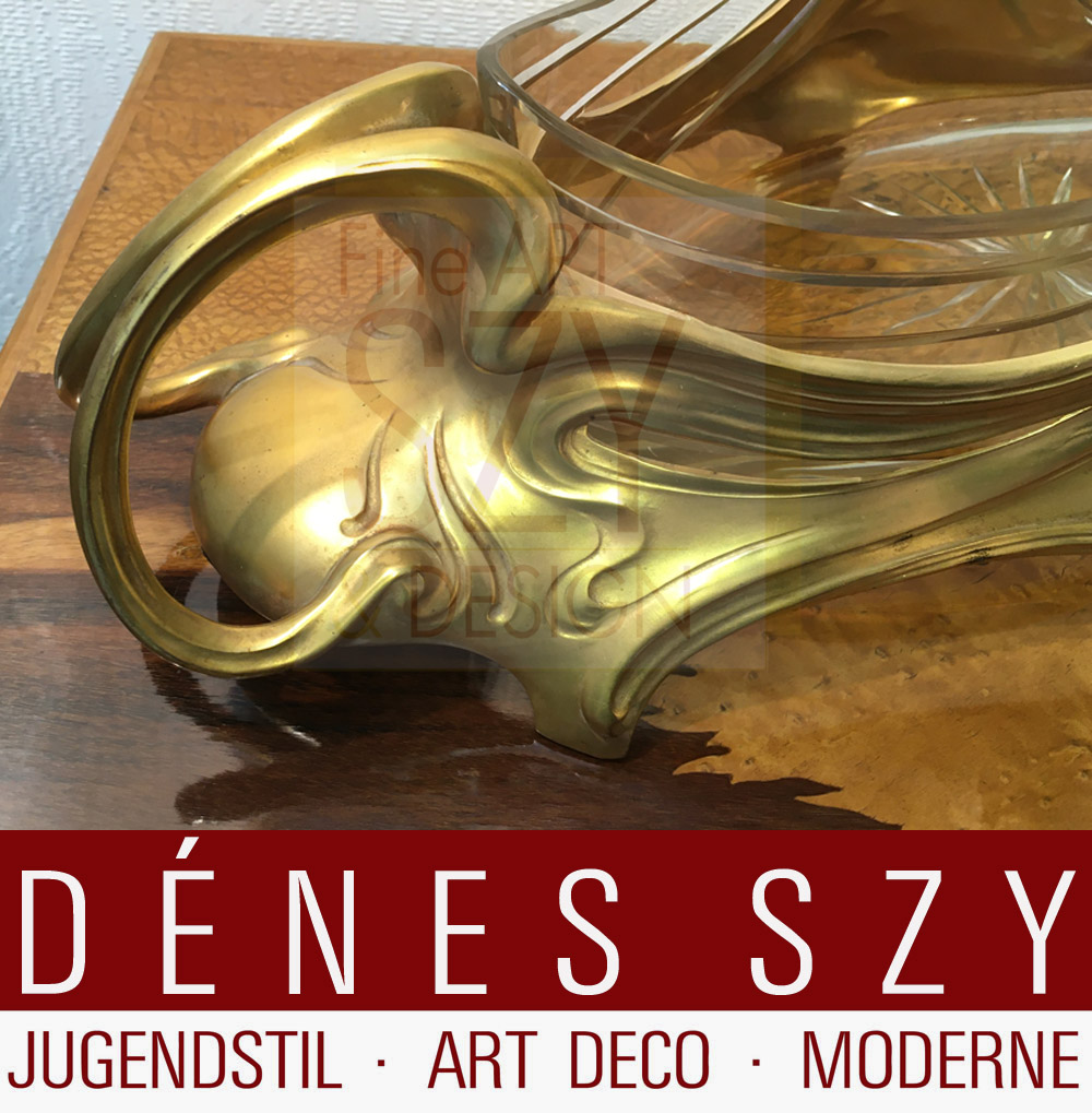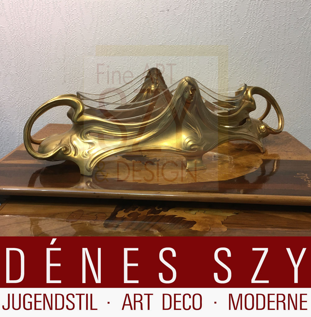 Jugendstil Jardiniere Metall vergoldet, Bitter und Gobbers Krefeld um 1900