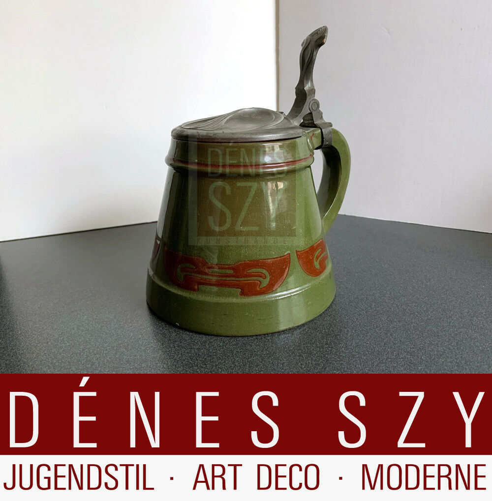 Jugendstil Keramik Bierseidel Reinhold Hanke, van de Velde