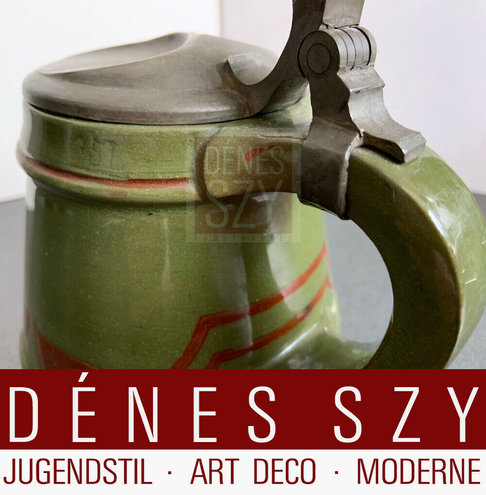 Jugendstil Keramik Bierseidel mit Zinndeckel
