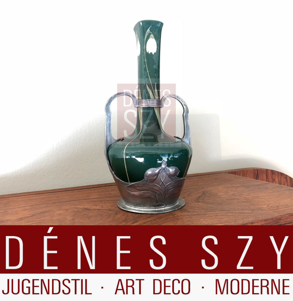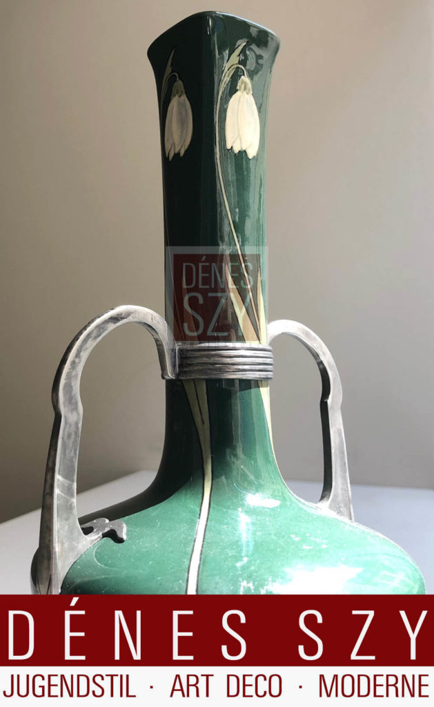 Jugendstil Keramikvase mit Zinnmontur