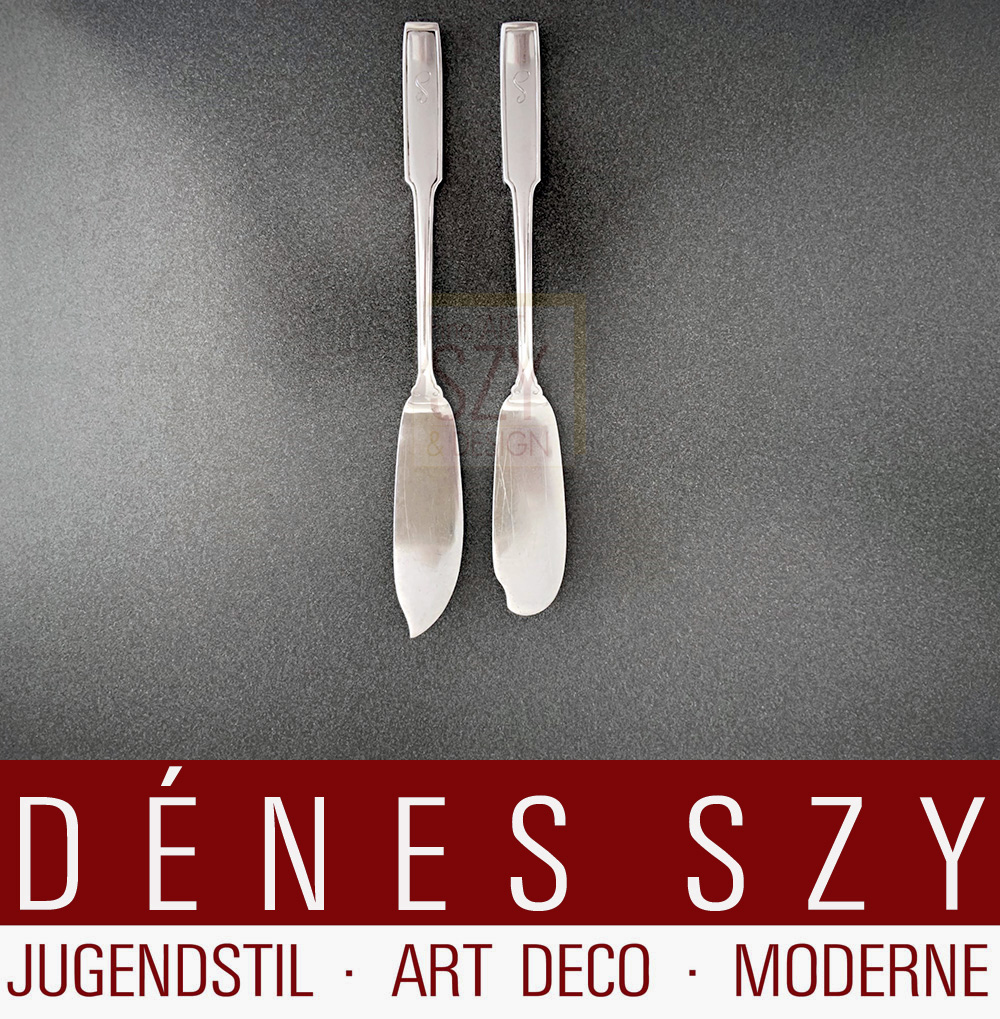 Münchener Jugendstil Käsemesser, Vollsilber, 1x 21 cm, 54 Gramm (Links im Bild)