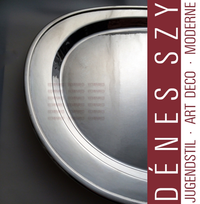 XXL oval Art Deco tray, Design: Karl Gustav Hansen, Execution: Hans Hansen silversmiths, Copenhagen approx. 1940, Denmark, Sterling silver, Silver, Solv, Denmark