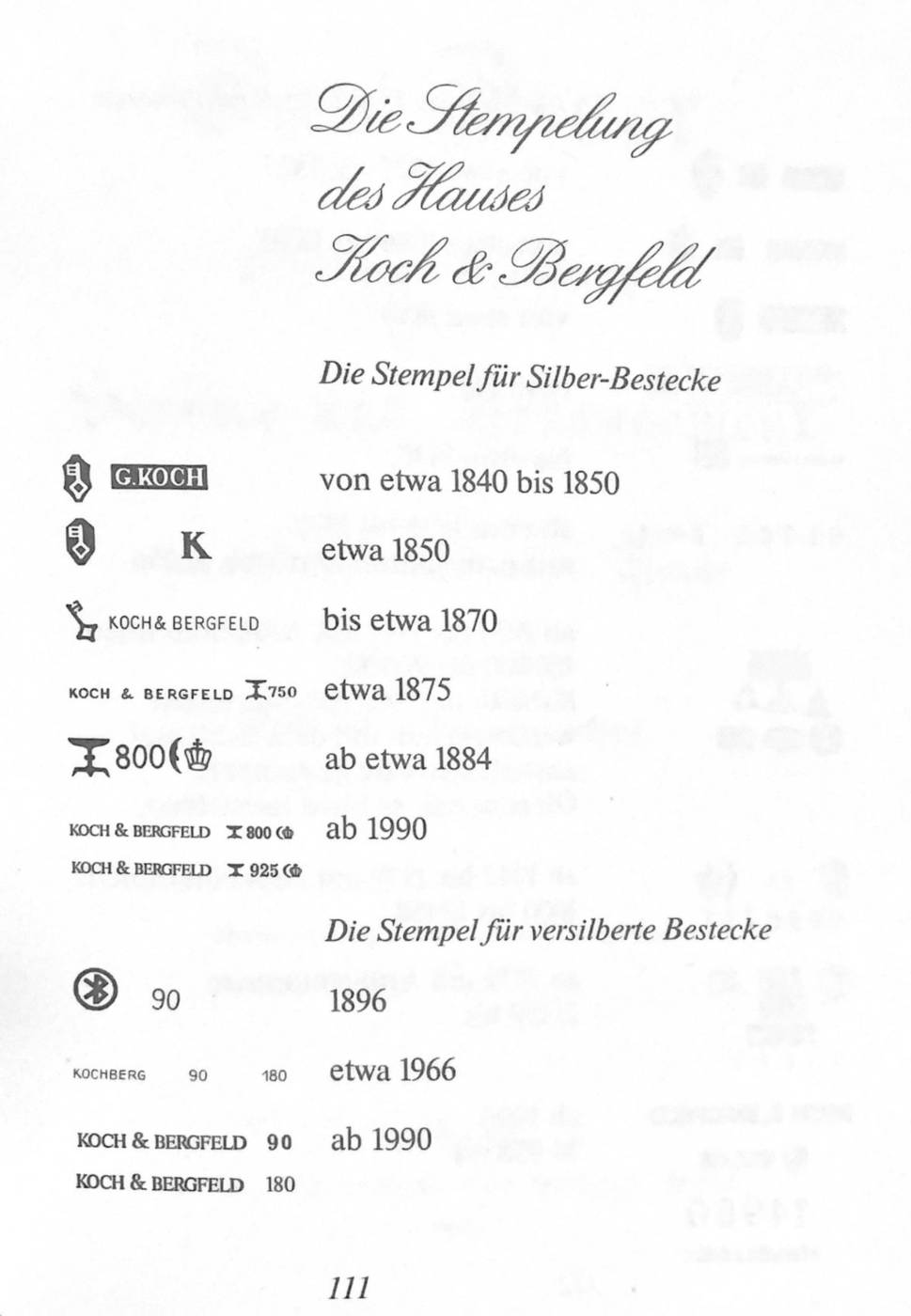 Silberstempel Koch & Bergfeld aus: Carl-Wolfgang Schürmann (Hrg.): Silber aus Bremen. 150 Jahre Tafelbesteck von Koch & Bergfeld zu Bremen. Michael Wienand Verlag 1979.