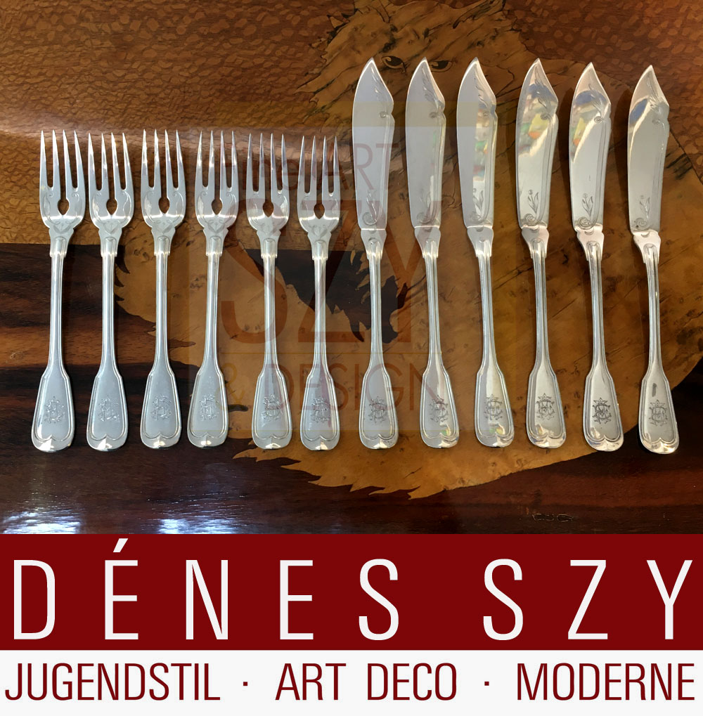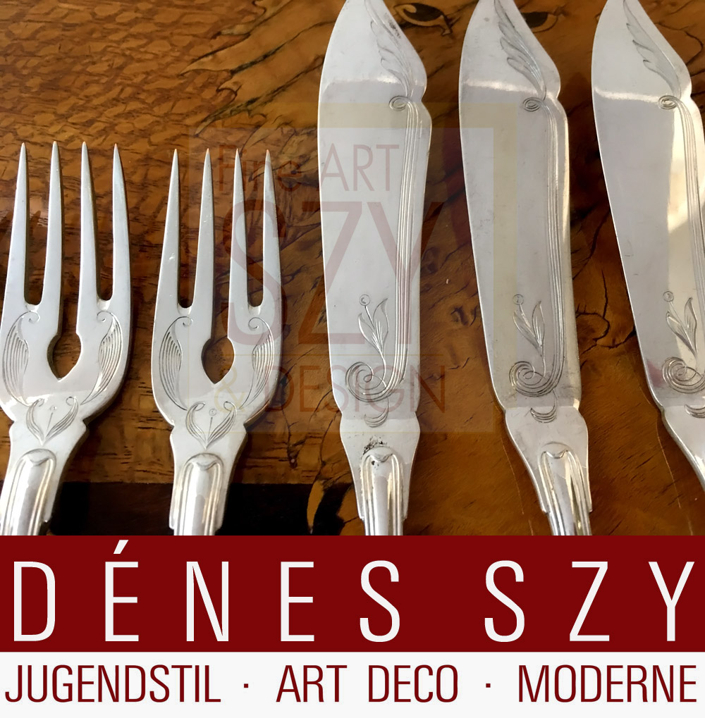 800er Silber Fischbesteck für 6 Personen (Das Besteckset besteht aus: 6x Fischmesser und 6x Fischgabel) Bremen um 1900