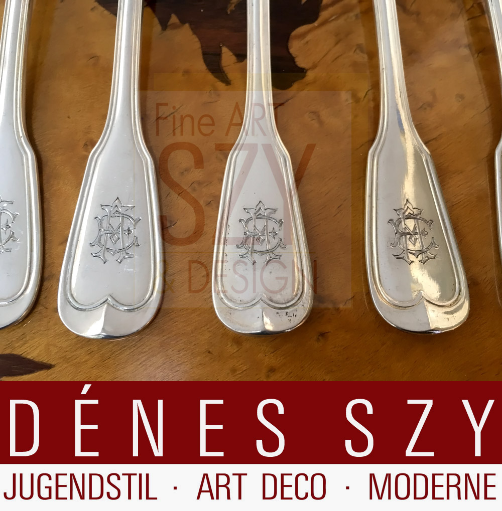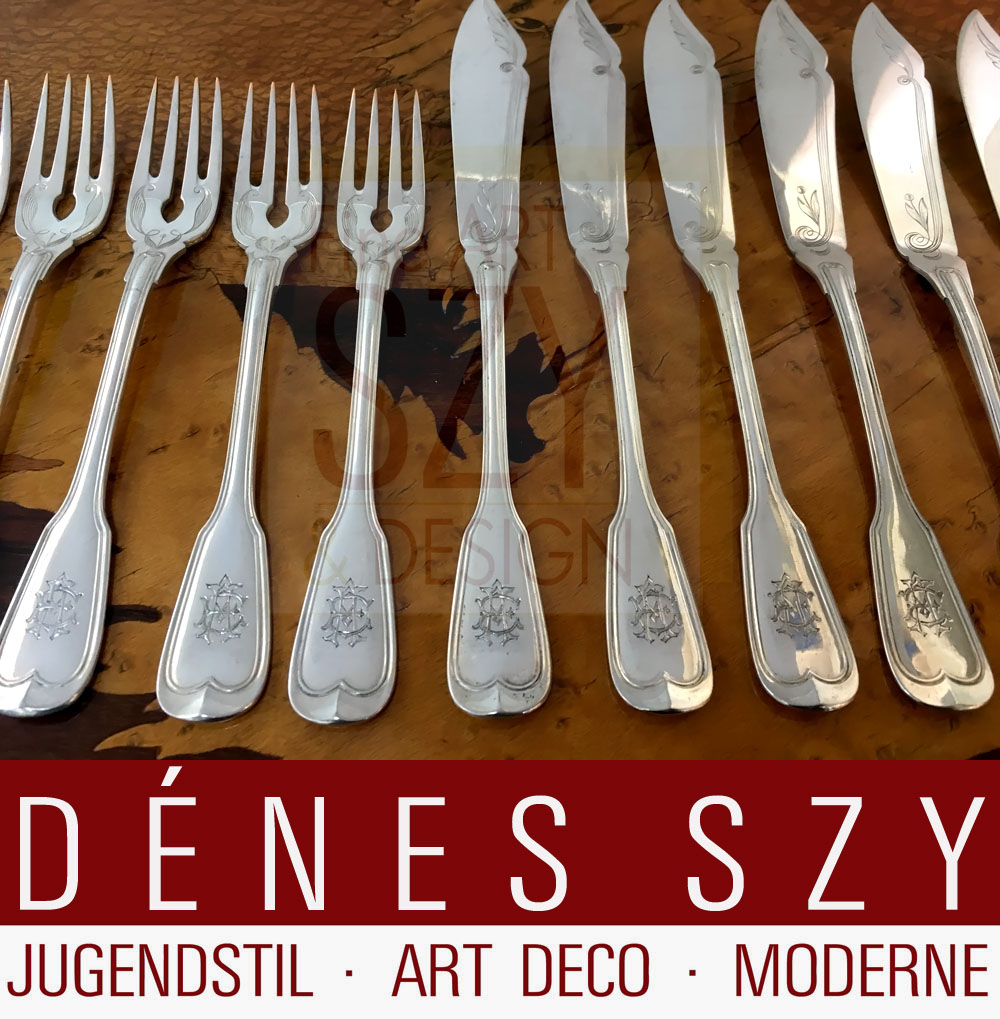 Klassische Augsburger Faden Echtsilber Fischbesteck schwere Ausführung, 12 teilig für sechs Personen.