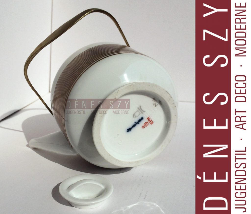 Burg Giebichenstein Halle, Porcelaine Extraktkaennchen du service Hallesche Form, décor rainuré en or avec une poignée en argent plaqué or (poinçon 900)