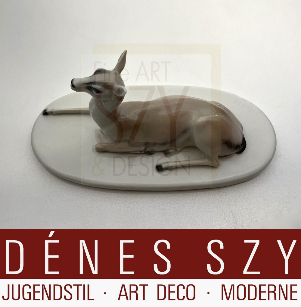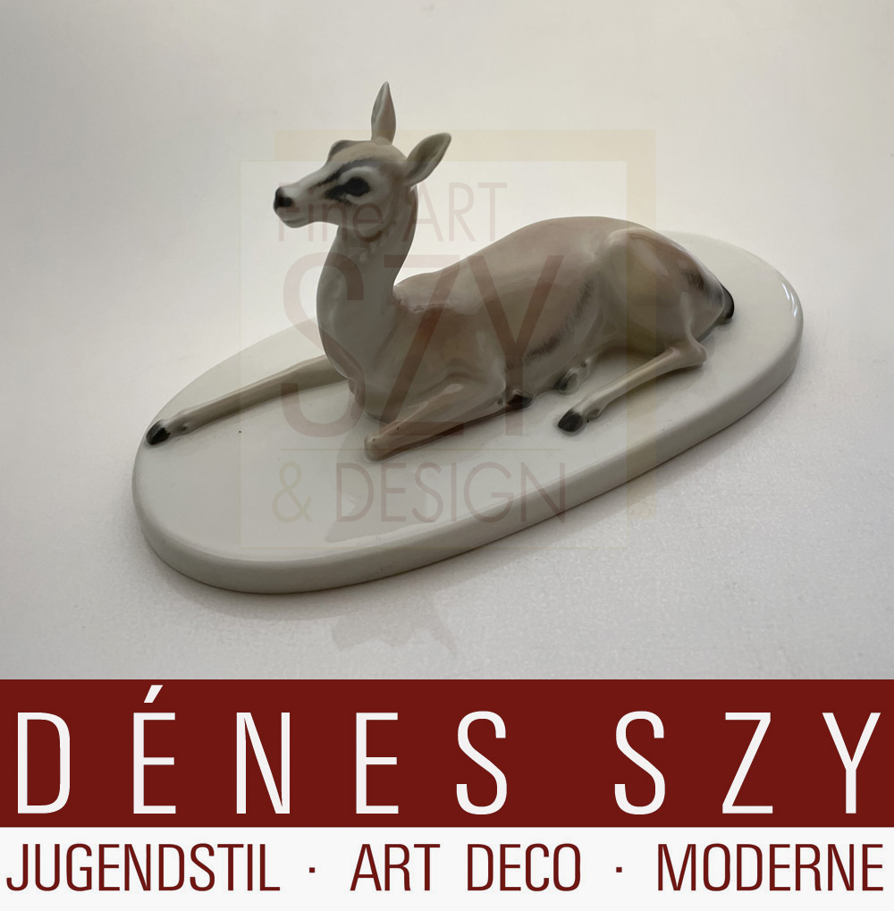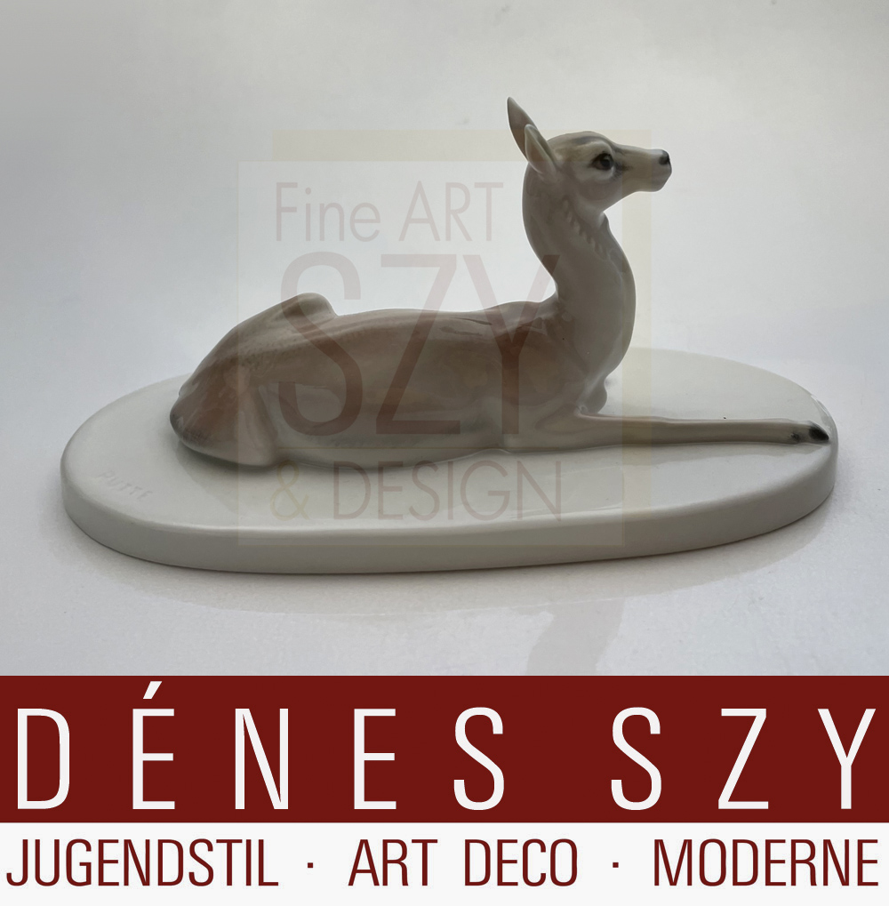 Art Deco Porzellan Figur: Liegende Gazelle mit angezogenen Vorderbeinen