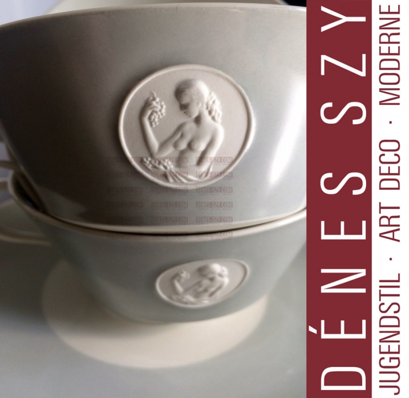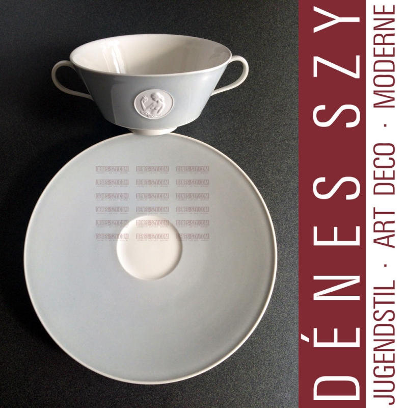 Suppentasse des Arkadia Services, KPM Berlin, Siegmund Schütz und Trude Petri 1938, Bisquit Porzellan, GRAU mit Medaillon