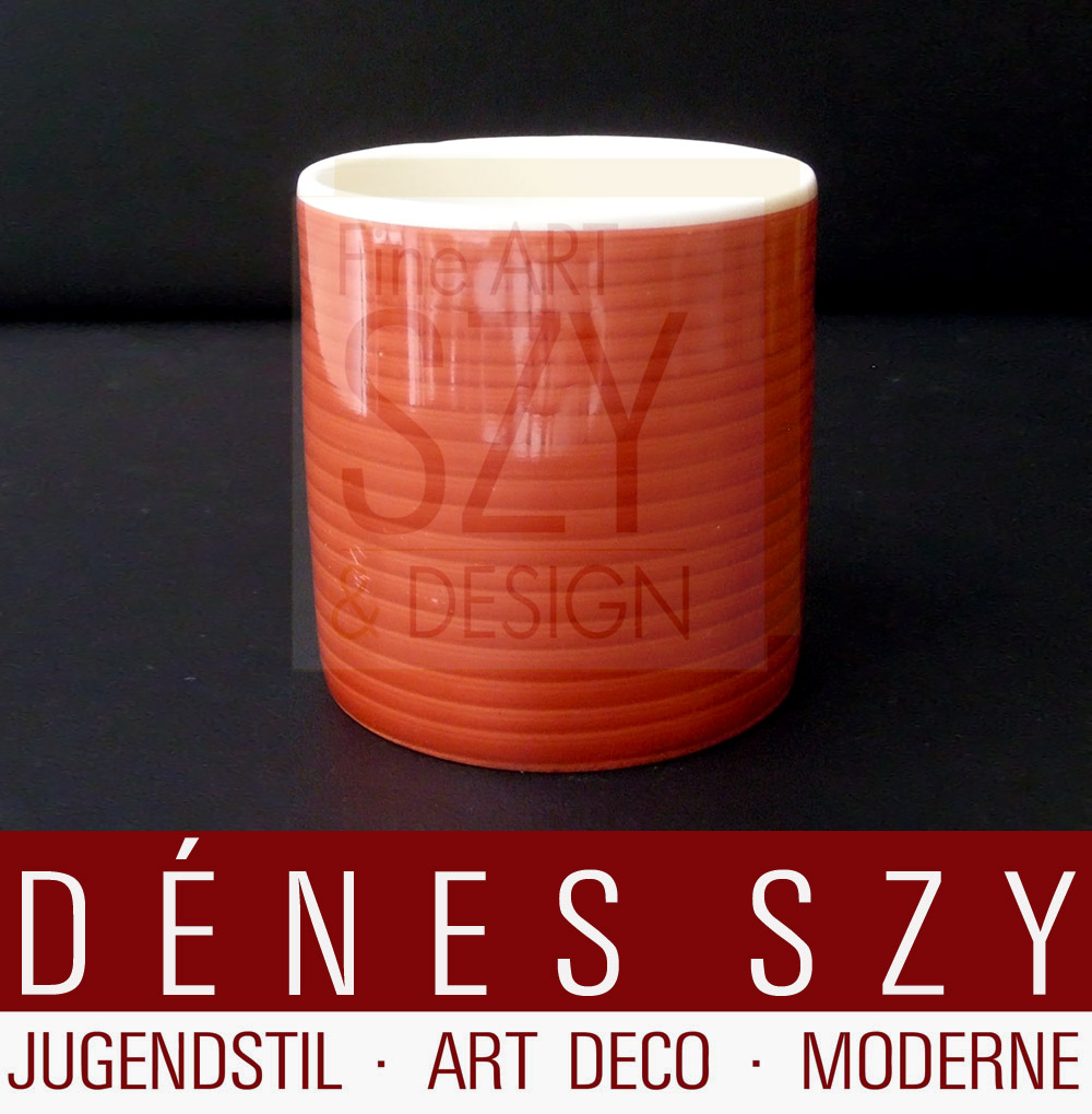 kleiner Porzellan Blumenbecher aus technischer Form mit Rostrotem Rillendekor