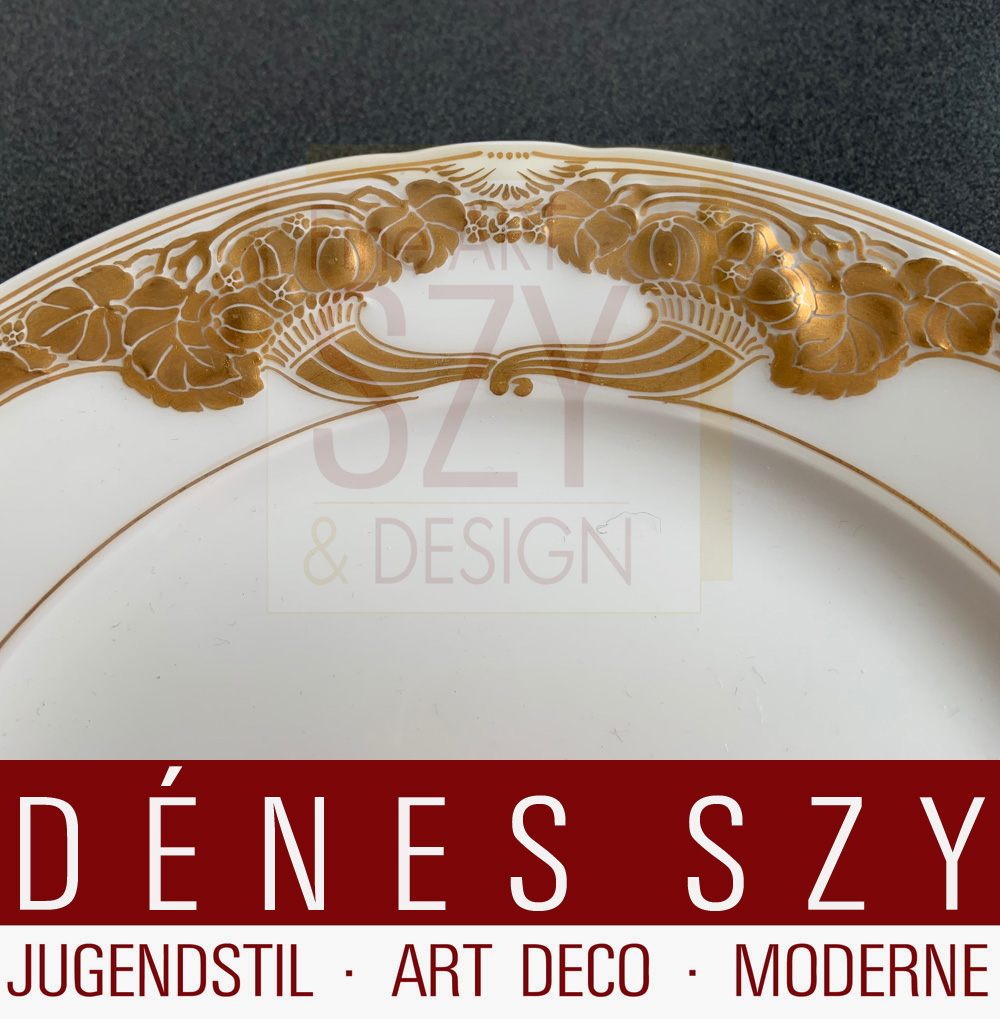 Piatto da dessert con pittura in oro, Design: Theodor H. Schmuz-Baudiss 1912, Modello: Ceres, il servizio Ceres è stato progettato per il 150° anniversario di KPM nel 1913, Esecuzione: Royal KPM Berlin 1914-18, Germania