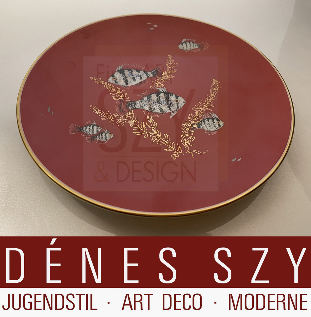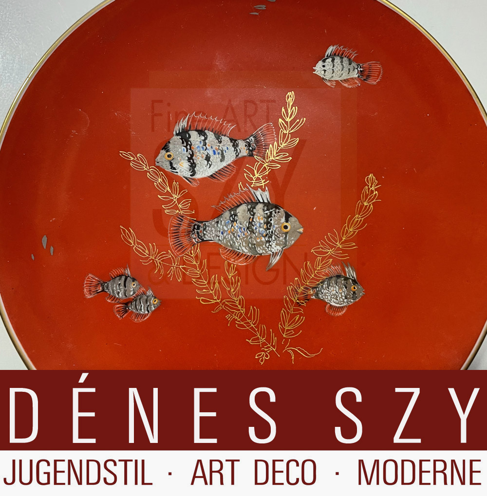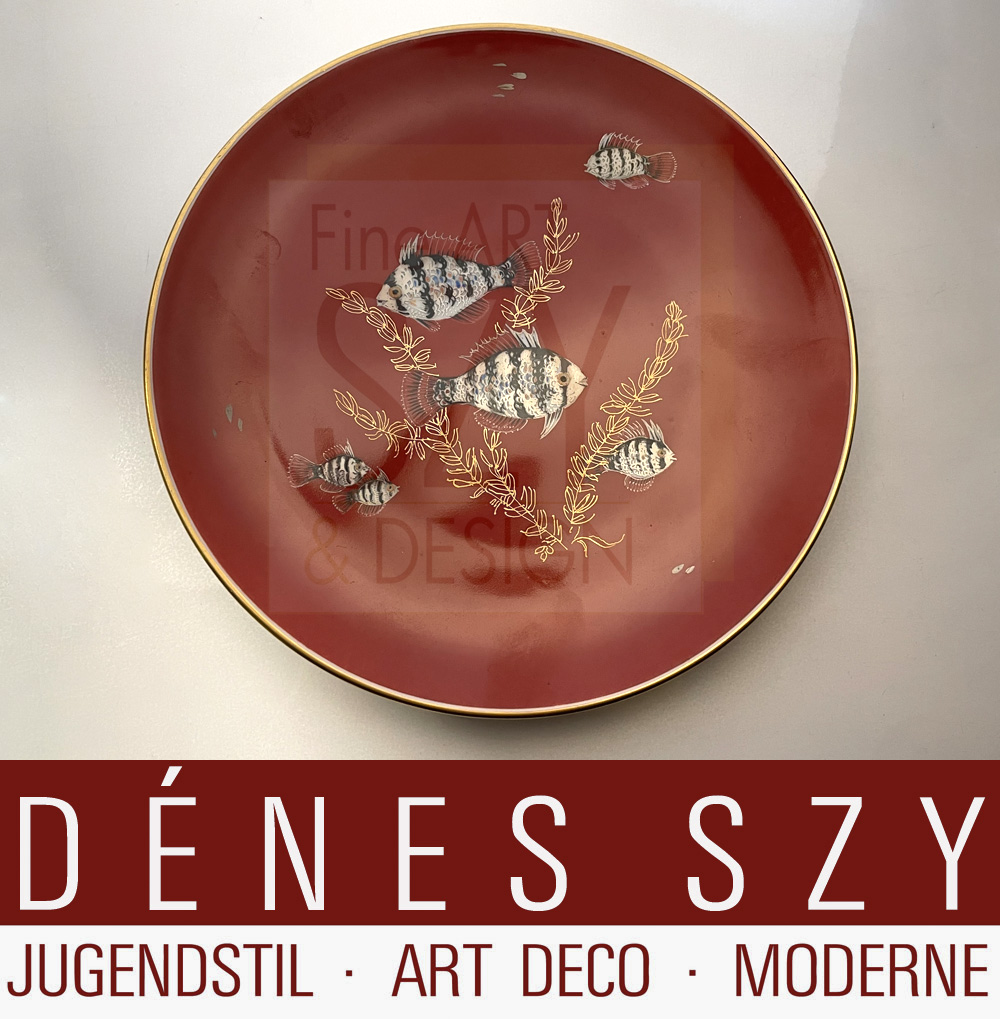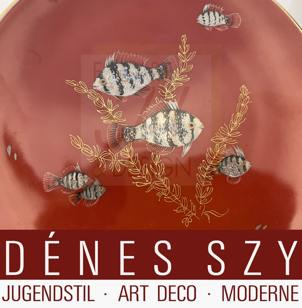 Bemalung: Paul Zerbe, Berlin-Spandau, Fische auf rostrotem Fond, gold gehöht, Goldrand