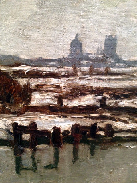 verso auf Keilrahmen: Prof. Max Clarenbach 1880 – Wintertag vor Neuss mit St. Quirinus 1898