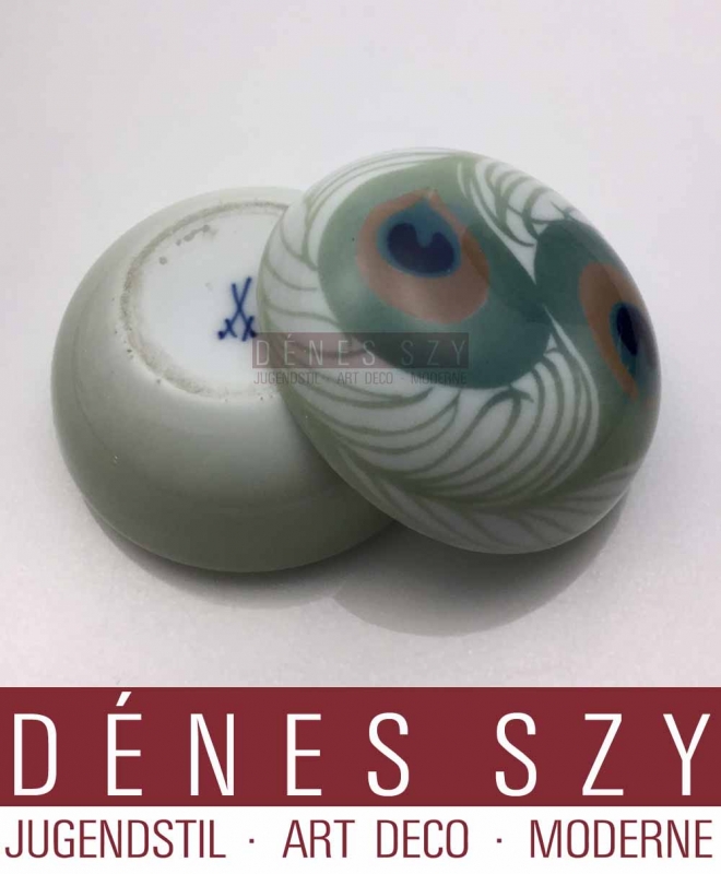 Meissener Jugendstil Porzellan Deckeldose Pfauenaugendekor