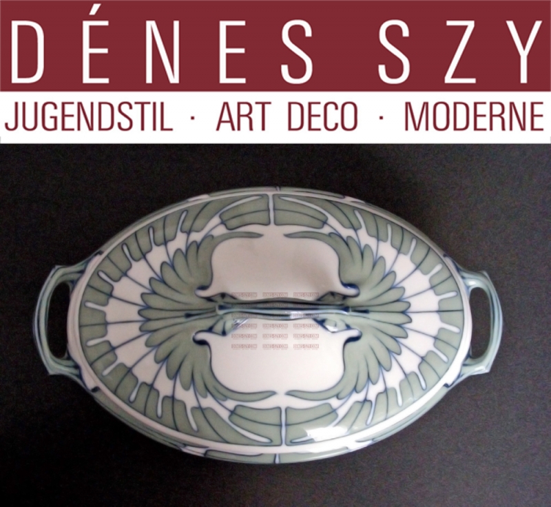 Jugendstil Porzellan Flügelmuster Service ovale Ragout Terrine