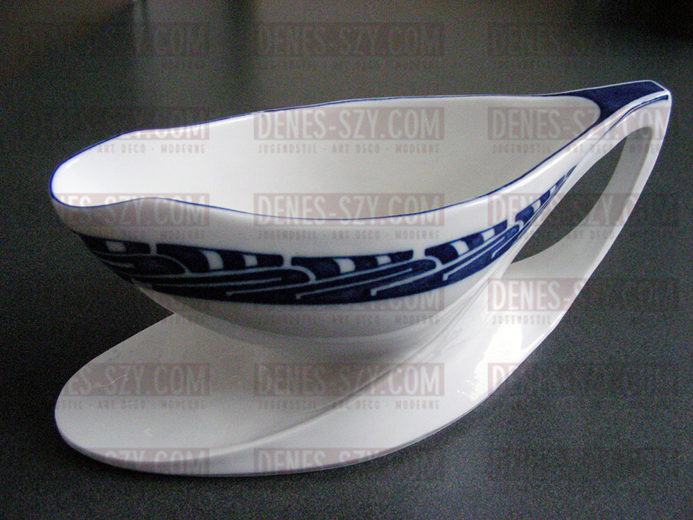 Henry van de Velde HvdV Jugendstil Meissenporzellan Sauciere, Muster Peitschenhieb in Kobaltblau, um 1904