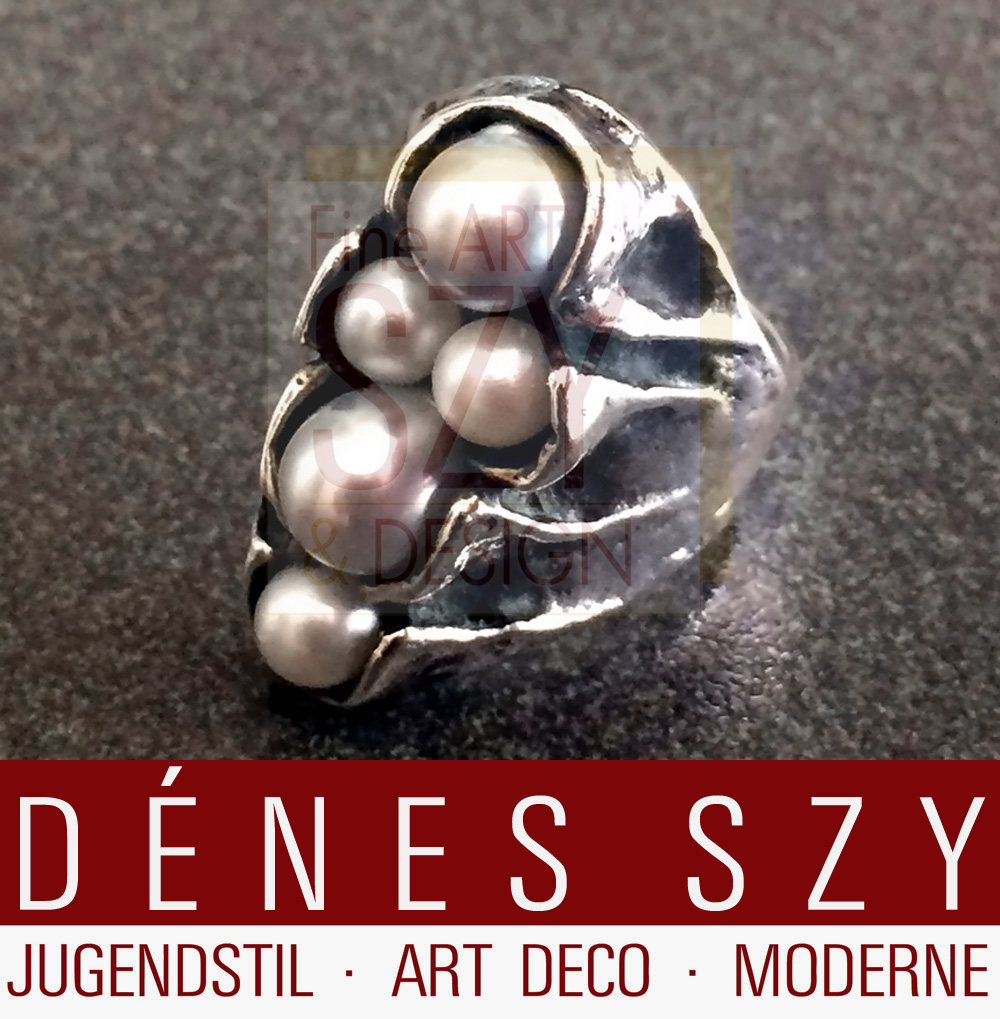 Anello in argento fatto a mano della metà del secolo con perle coltivate