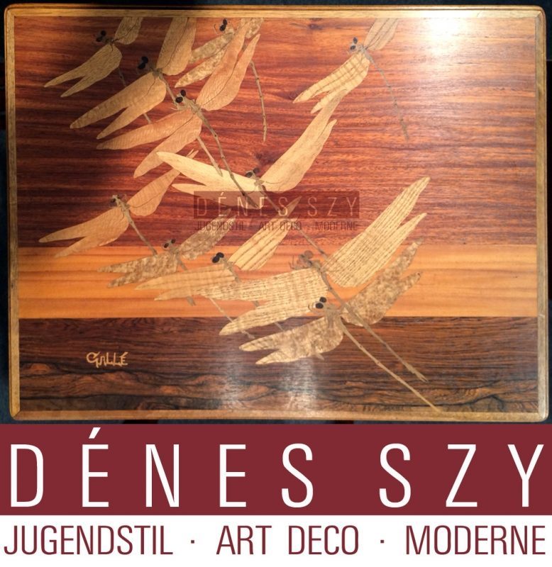 Ein herausragendes Möbelstück mit Schmetterlingen und Libellen sehen Sie bitte in der Sammlung des Rijksmuseums, Amsterdam Niederlande: Vitrinenschrank – Vitrinekast met marquetterie in florale motieven, Émile Gallé, c. 1900