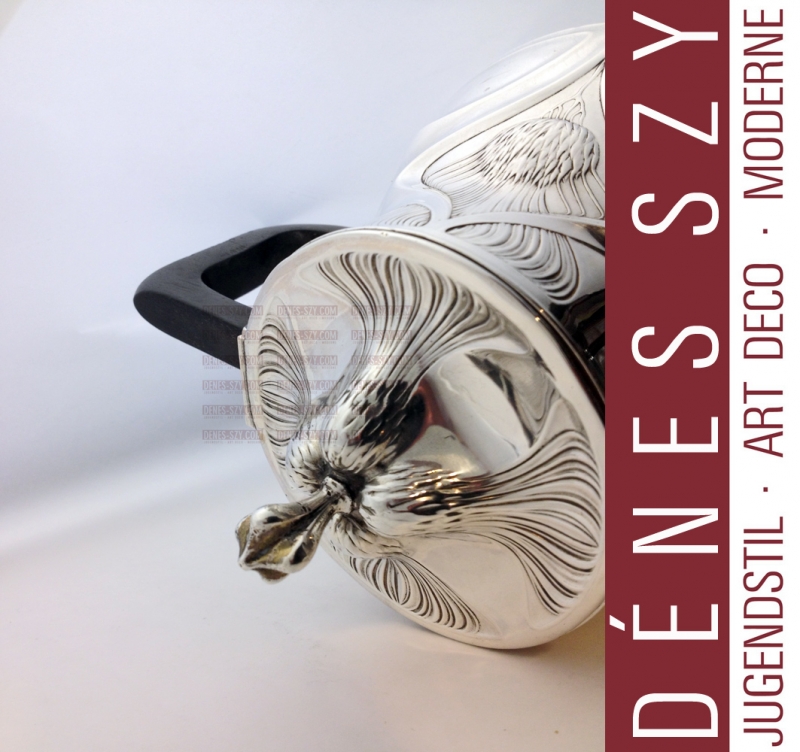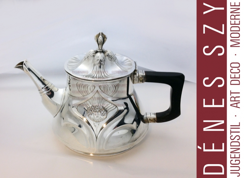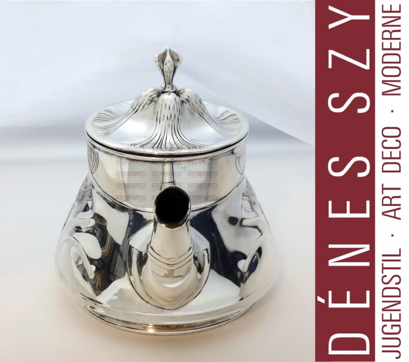 German Art Nouveau Sterling Silver Tea pot, Service, late 19th/early 20th century, Orivit, maker, each with a thistle within a whiplash, teapot, Cologne Germany