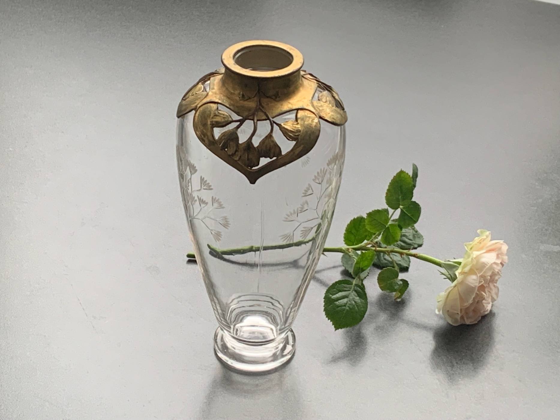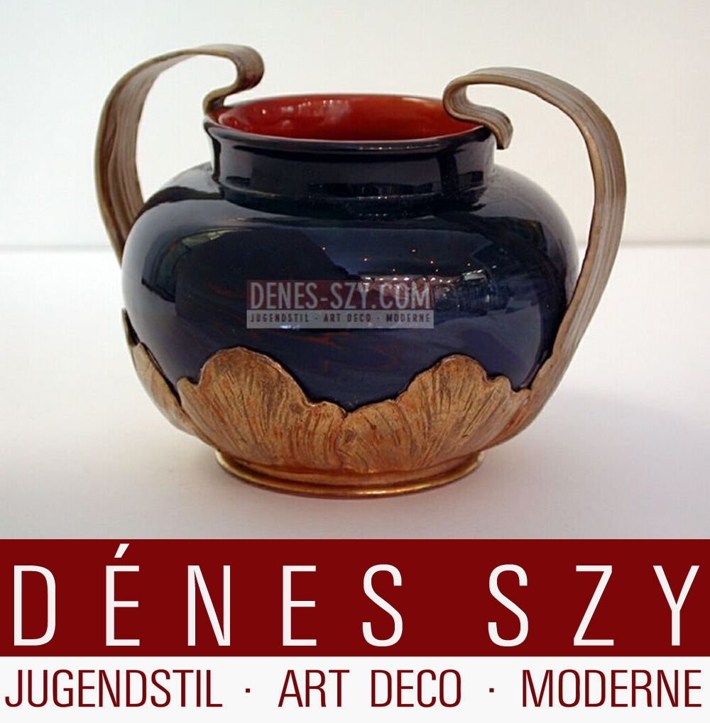 Jugendstil Schmuck-Vase / Blumenhalter, Orivit-Metall und Keramik, Fa. Orivit AG, Koeln um 1900, Deutschland