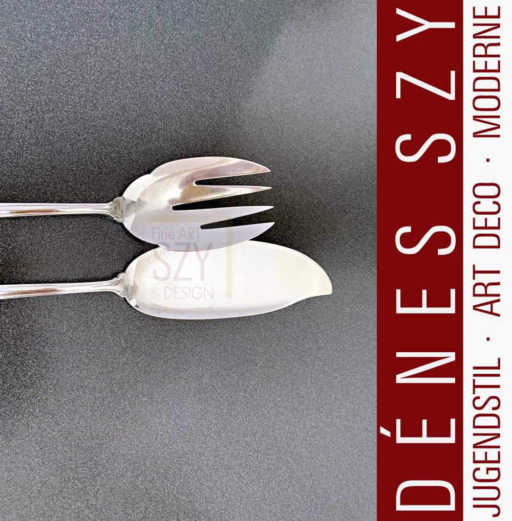Münchener Jugendstil Fischvorleger Paar, Silberbesteck, Servierbesteck nach Entwurf von Richard Riemerschmid für Carl Weishaupt München 1911/12