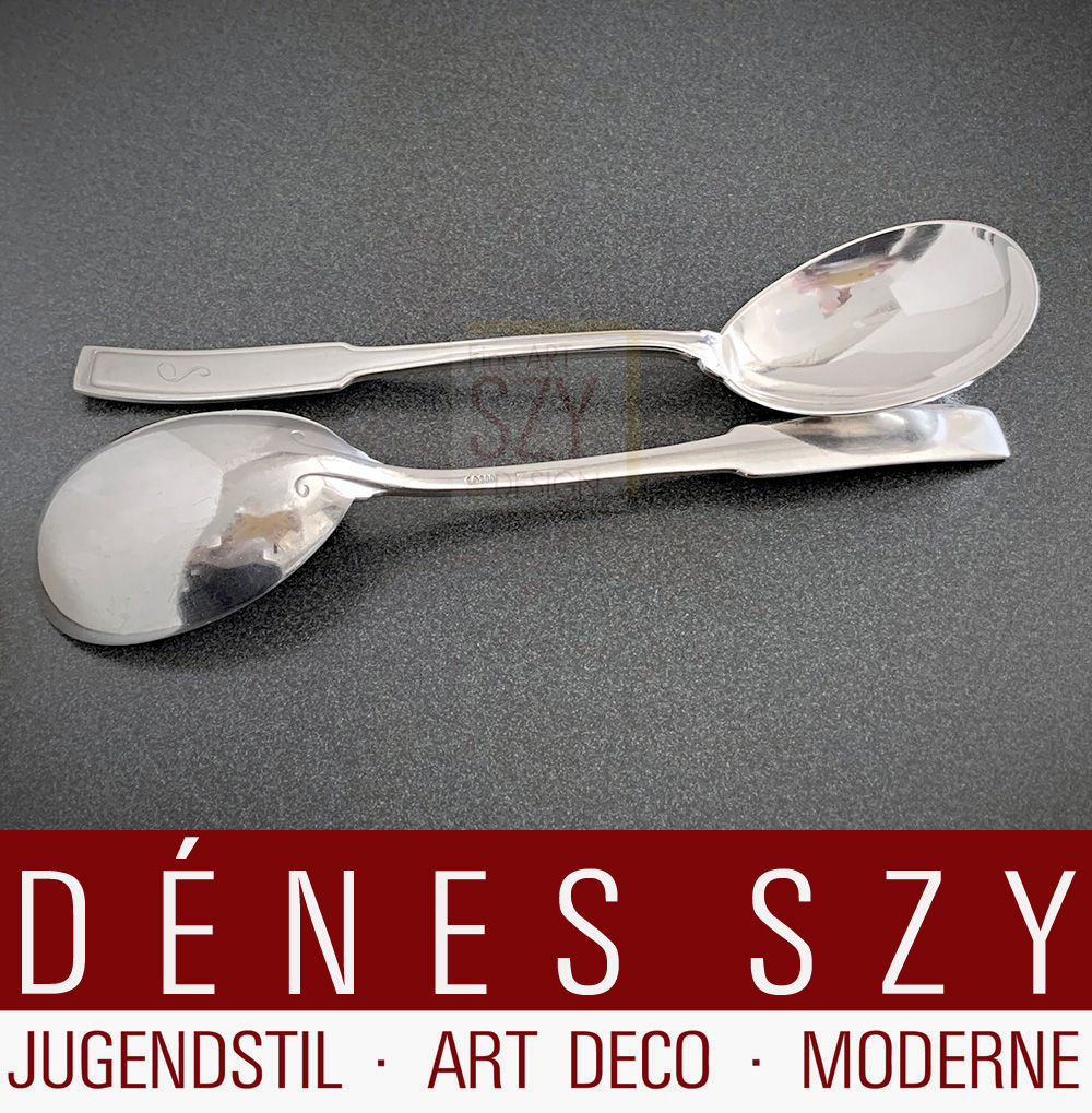 Carl Weishaupt München, Design Richard Riemerschmid, M 350, 800er Jugendstil Silberbesteck, Paar Fischvorleger, Vollsilber.