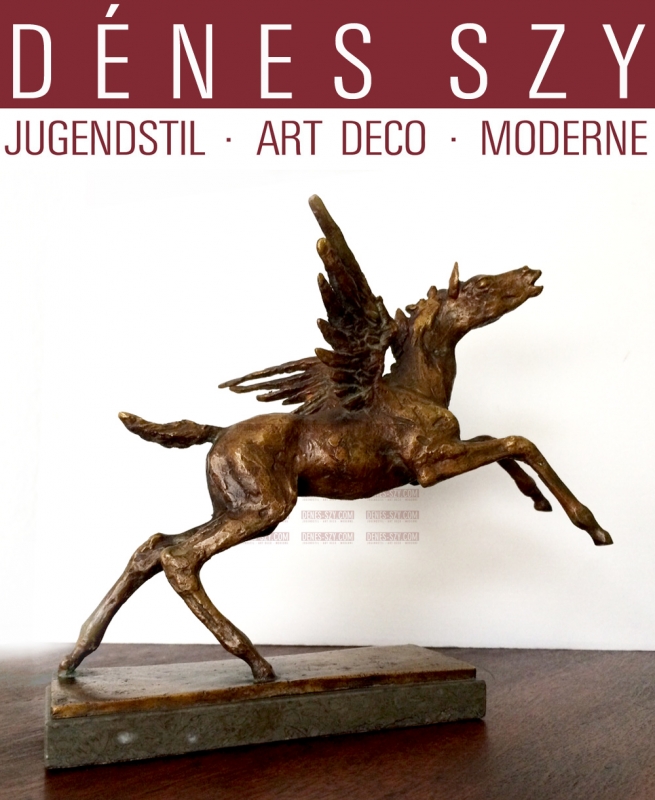 Renée Sintenis, Pegasus, bronze figure, Berlin 1952. Renée Sintenis, Berlin sculptor (Glatz / Silesia 1888 – 1965 Berlin). Pegasus, bronze figure, designed by Renée Sintenis in 1952. Foundry mark Noack Berlin (Germany) on the plinth and monogram RS on top. Dimensions: height 17.6 cm.