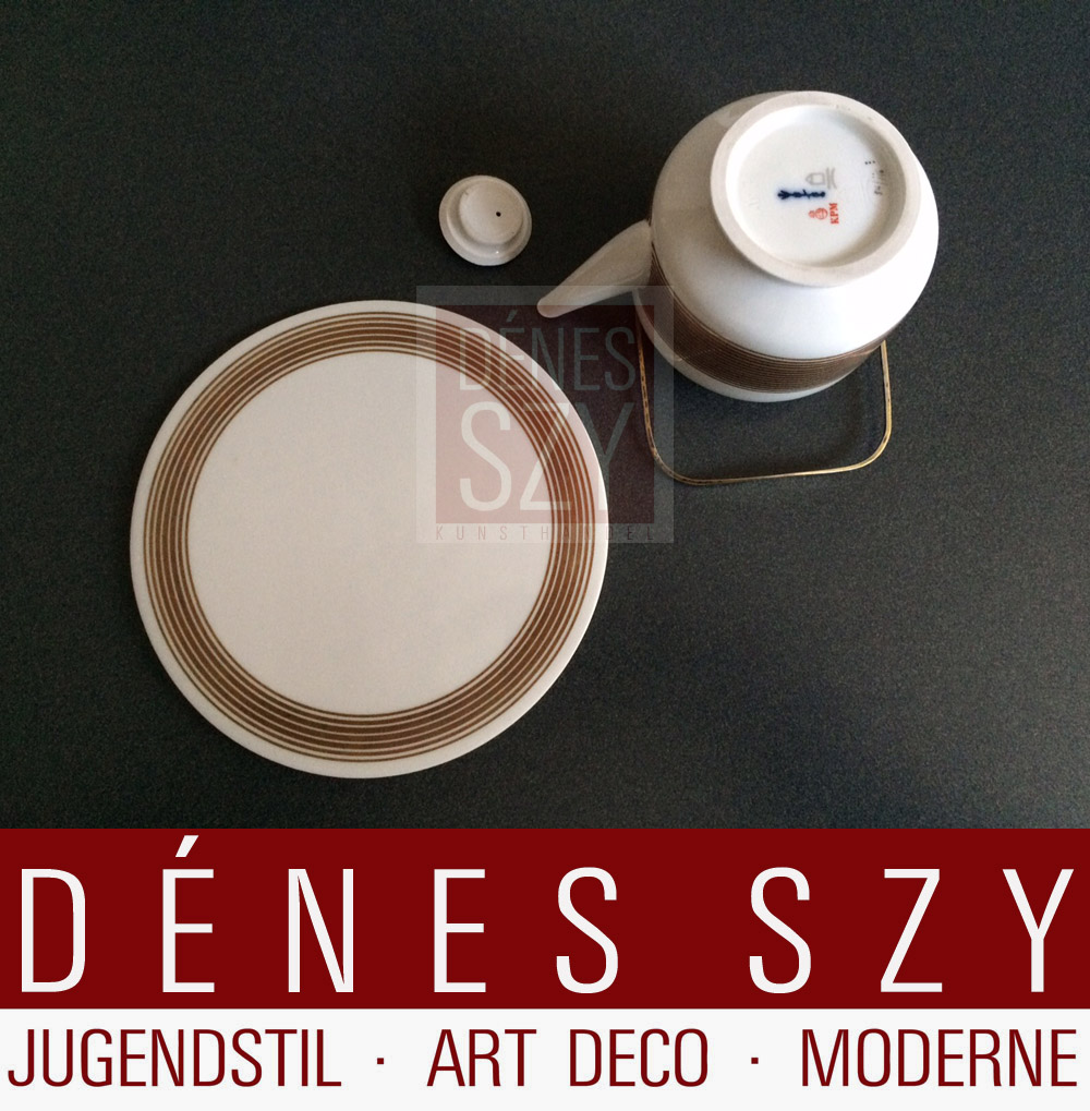 Marguerite Friedlaender [Lyon 1896 – 1985 Guerneville, Kalifornien], deutsch-englische Keramikerin und Porzellan Designerin. 1919-1925 lernte und arbeitete sie am Bauhaus, machte 1926 ihre Meisterprüfung in Höhr-Grenzhausen, um danach bis 1933 an der Kunstgewerbeschule Burg Giebichenstein, Halle, zu lehren. Dabei hatte sie als erste deutsche Töpfermeisterin die Leitung der Keramikabteilung inne. Gleichzeitig arbeitete Sie für die KPM Berlin, für die Sie 1929 das Service “Halle” entwarf. Unmittelbar nach Machtübernahme der Nazis verlor sie ihre Arbeit und emigrierte zunächst in die Niederlande, dann in die USA, fortwährend als Keramikerin arbeitend. So wurde sie für ihre 1937 für die Niederländische Regierung entworfene Auftragsarbeit, das “Five a clock” Teeservice auf der Weltausstellung in Paris 1937 mit einer Silbermedaille ausgezeichnet. (Friedlaender, Marguerite)