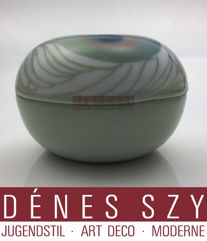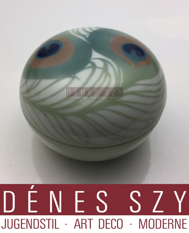 scatola in porcellana di Meissen, stile liberty, decoro di pavonie