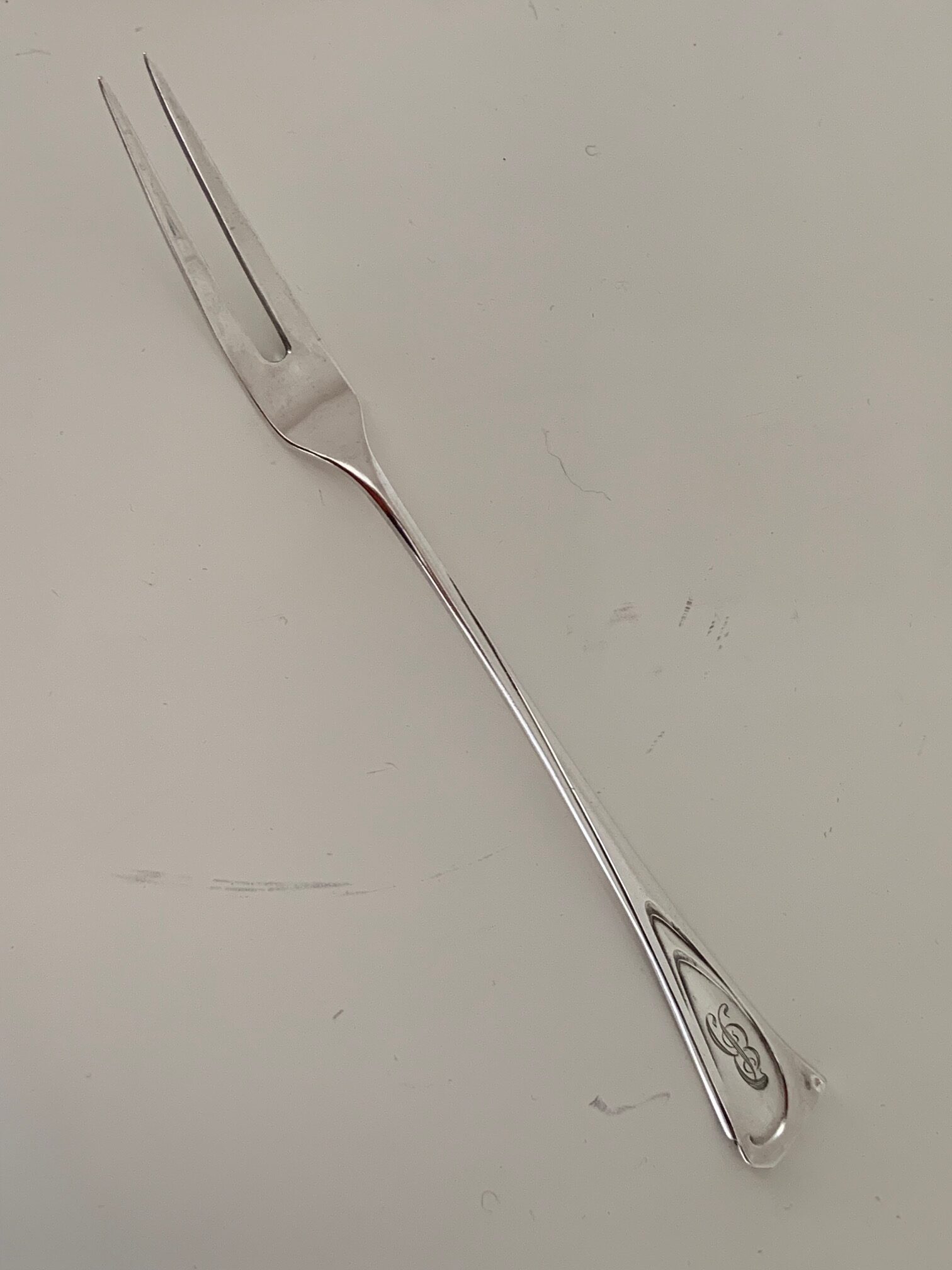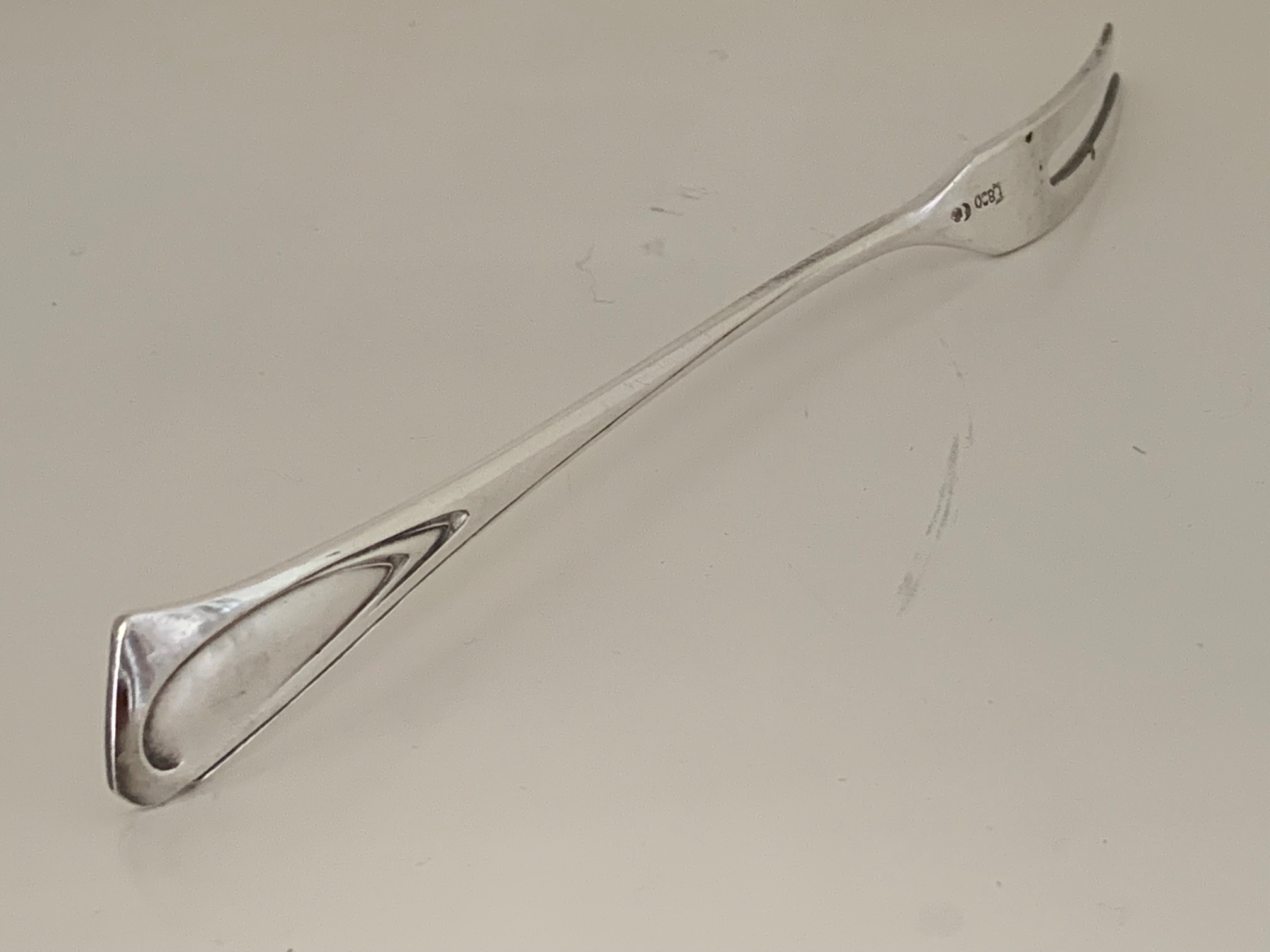 Aufschnittgabel, Deutsches Jugendstil Silberbesteck, Modell: 27100, Entwurf: Henry van de Velde ca.1902, zugeschrieben.