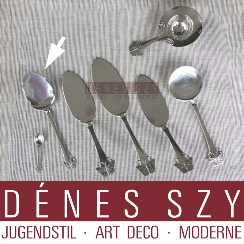 posate in argento di Frigast, Danimarca 1900 circa, decoro di FARFALLE, spatola pasticceria, fatto a mano