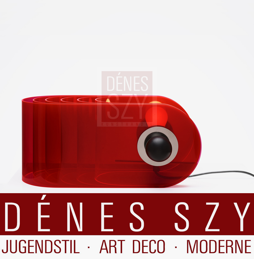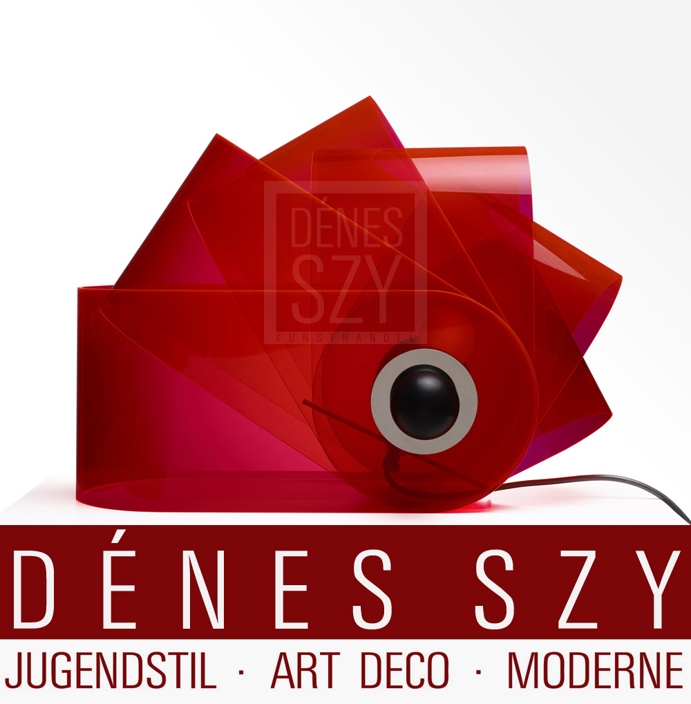 In seiner Form veränderbarer Leuchtkörper aus rotem Acrylglas, lasergeschnitten mit Metall
