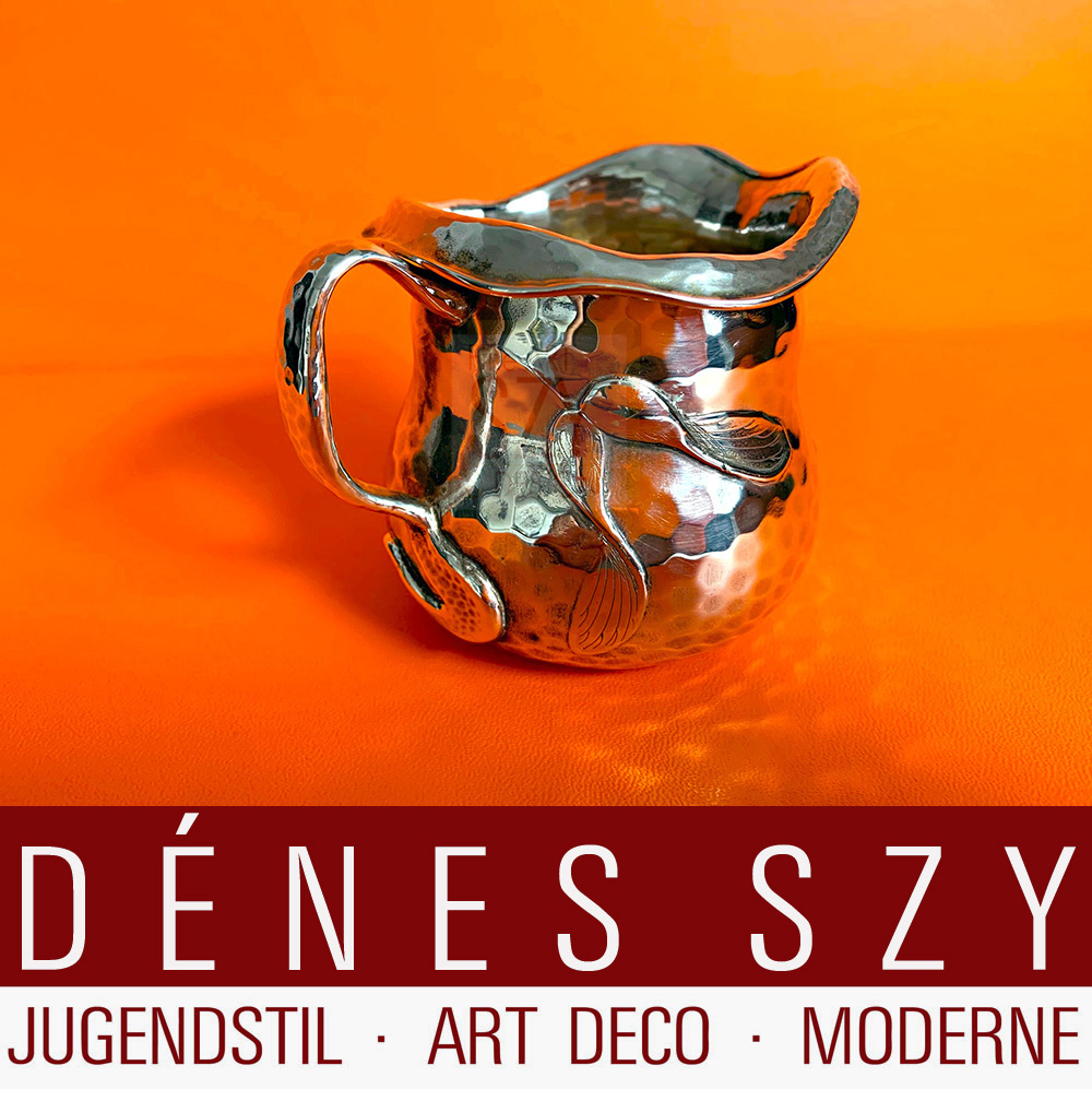 Americana, Tiffany, Sterling Silber, Handarbeit, Martelé, Jugendstil, Sahnegießer, Kännchen mit aufgesetztem Ahornblatt, decor.