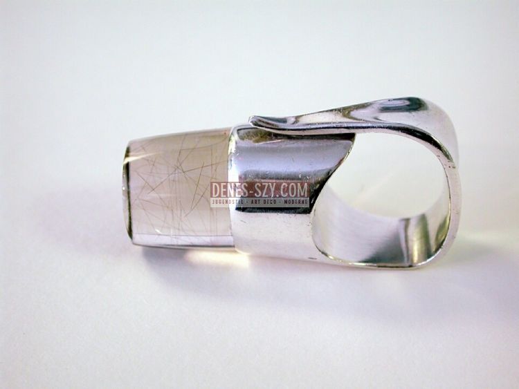 Mid-Century Modern, Georg Jensen Silversmiths, design Viviana Torun Buelow-Huebe (Swedish 1927-2004), handmade handcrafted Sterling silver, Jewelry, Silver and Rutilated Quartz Ring 151, Copenhagen Denmark 1970, Modernist design