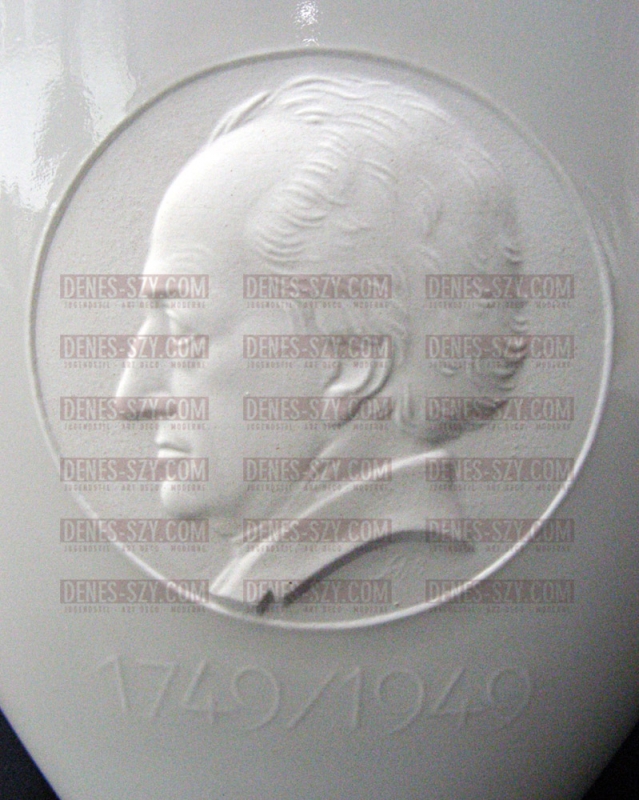 vaso in porcellana bianca di KPM Berlino per il anniversario di Johann Wolfgang Gother 1949