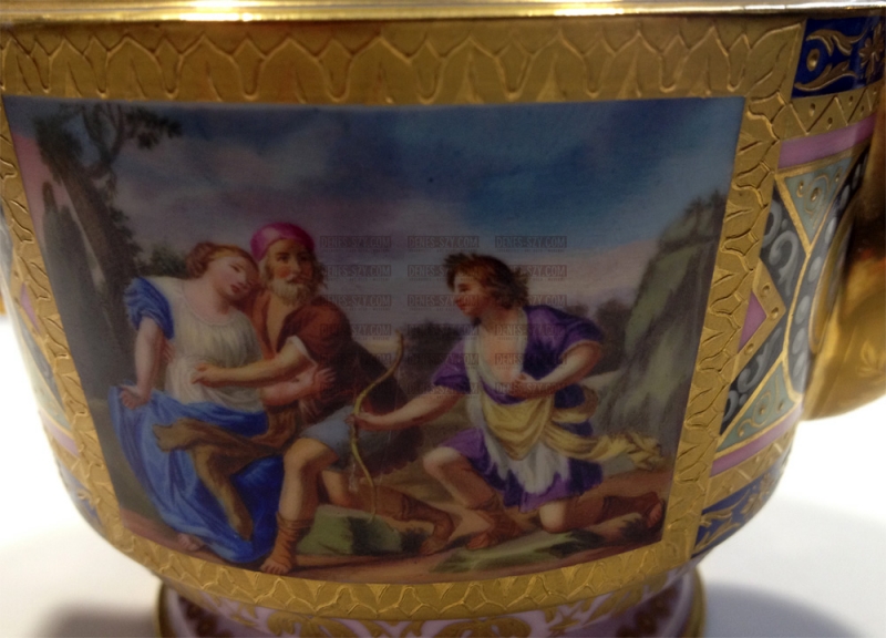 mit feinsten bildlichen Darstellungen sowie verschiedenster Dekore in Gold