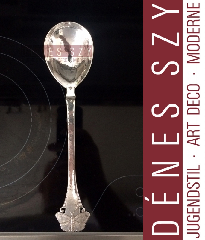 Hammerschlag Dekor, am Ende des Griffes ein plastisch ausgeformter Schmetterling als Dekoration, Jugendstil Dekor