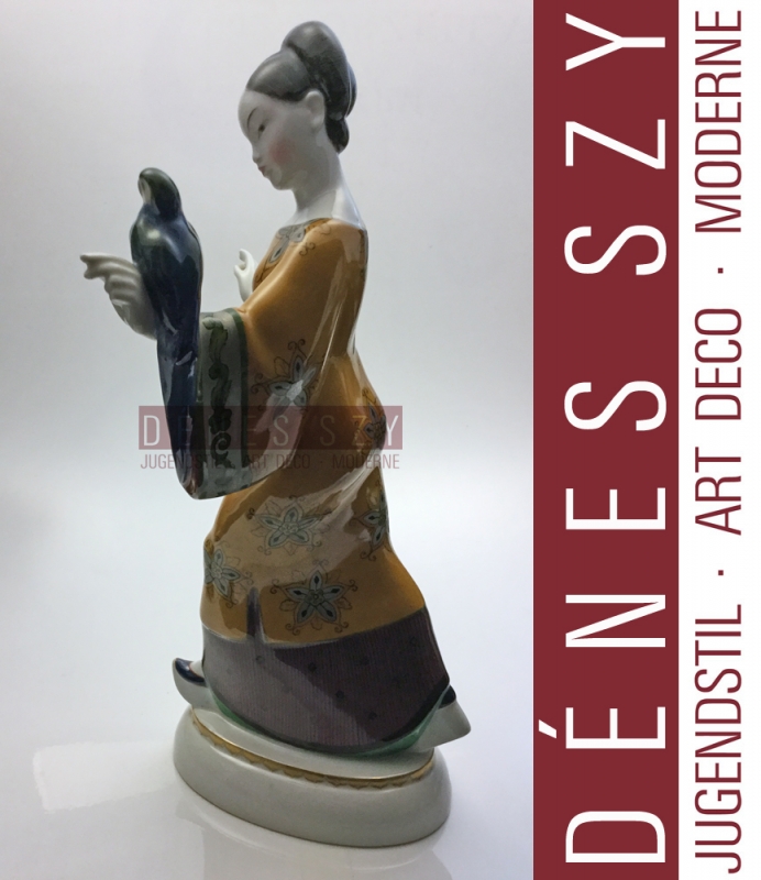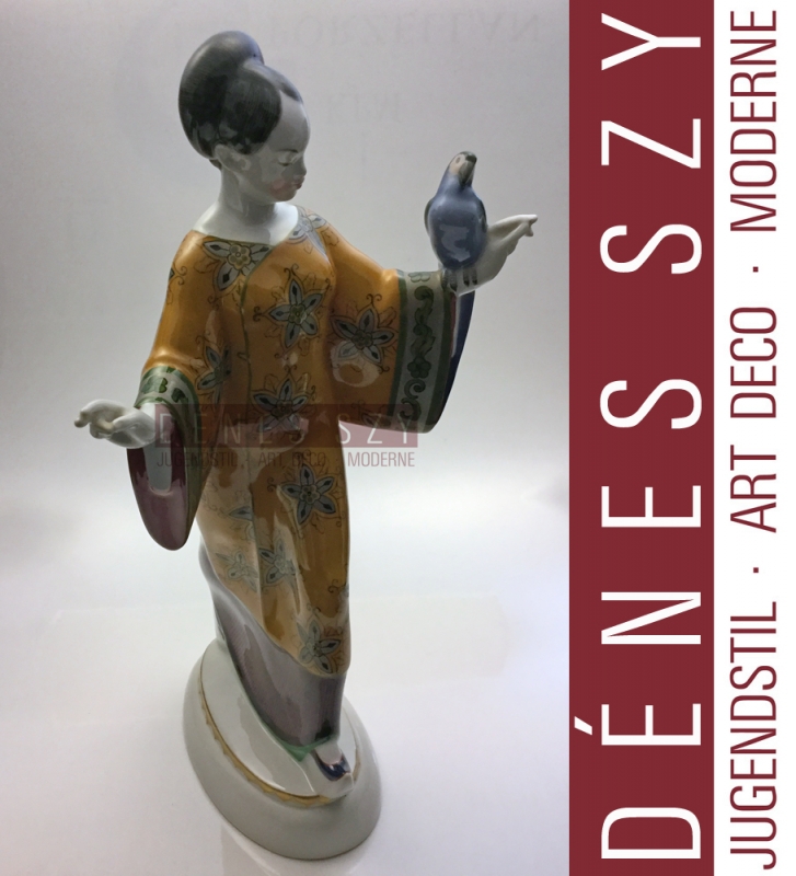 HOCHZEITSZUG KPM BERLIN Jugendstil Porzellan Figur, Chinesin mit Papagei: