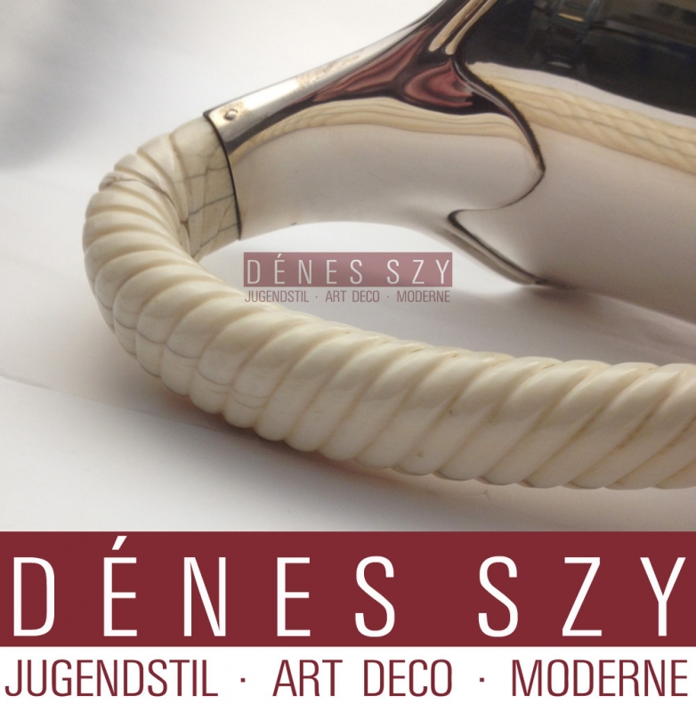 Wolfers Bruxelles Art Deco silver xxl helmet wine pitcher 1920 company Wolfers Freres Bruxelles, Belgian Art Deco handcrafted Silver water jug, helmet jug, wine jug around 1915 – 1920, silver 835 and bone large Art Deco silver wine jug, company WOLFERS FRÈRES Bruxelles ca. 1915 – 1920, silver 835 and bone.